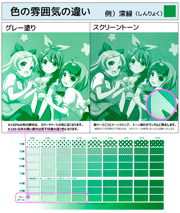 ■スクリーントーンは「トーンジャンプ」「トーン割れ」「モアレ」がランダムに発生しますので、