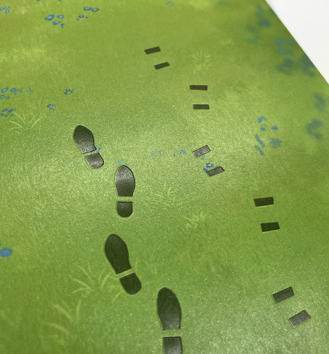 ウラ表紙の足跡は印刷ではなく《空押し》であしらわれています。