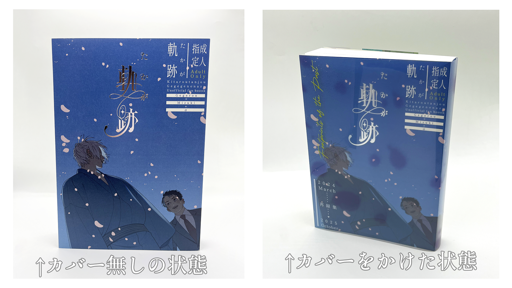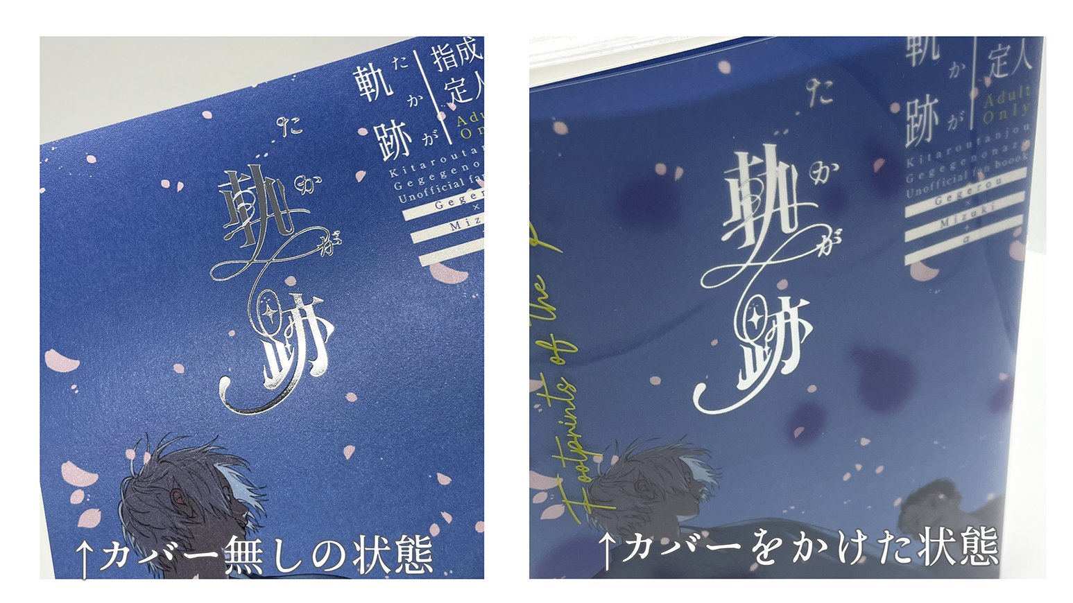 再録本ということで、何か特別感のある装丁にしたいと思いクリアカバーに印刷を施し、本にカバーをかけた時に絵柄が完成するような仕掛けにました。